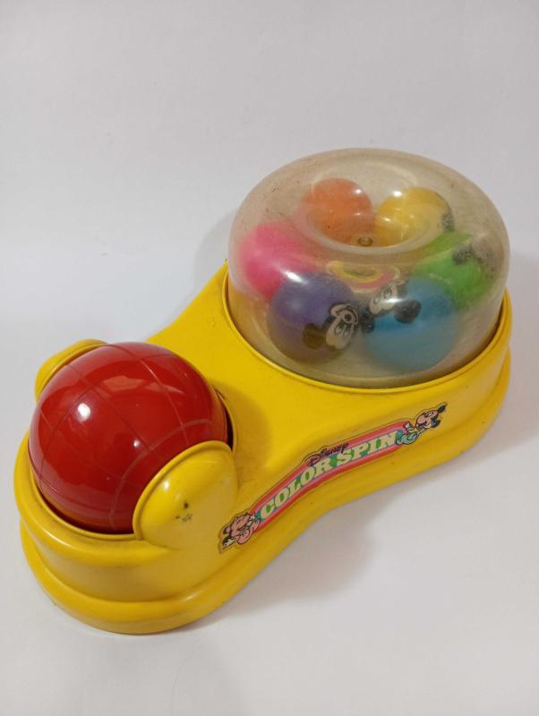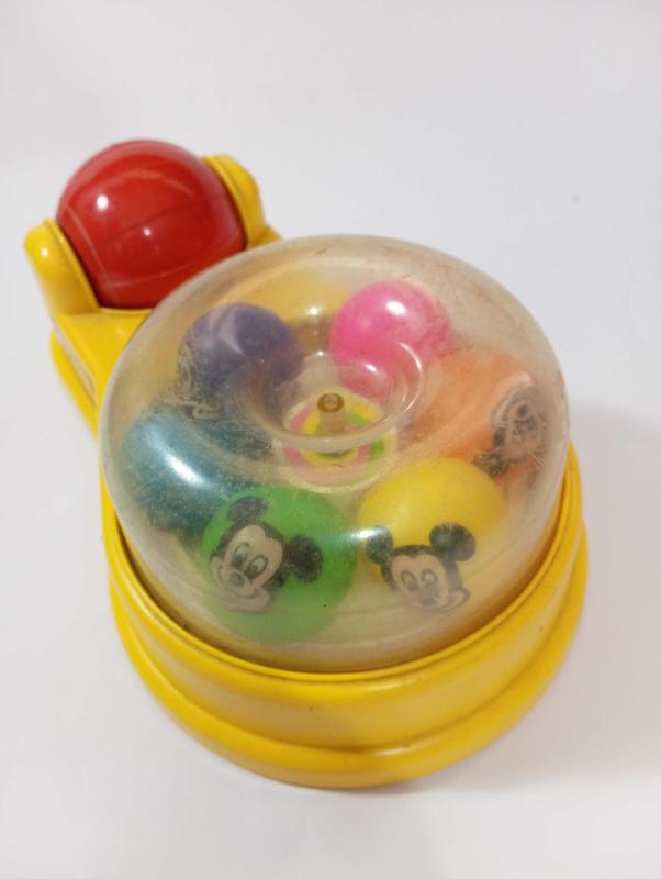 1986 Mattel oyuncak 25 cm Kırmızı topu çevirince Mickey mouse toplarin dönmesi gerekiyor . Ancak dönmüyor Kırık çatlak yok resimlerdeki haliyle koleksiyon dekorluk