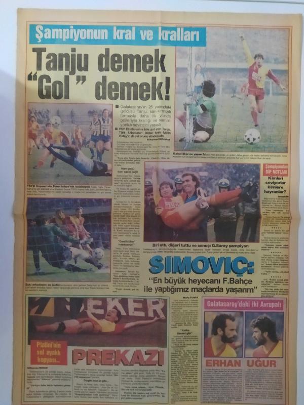 1987-1988 Sabah Gazetesi Lig Şampiyonu Galatasaray Futbol Takımı Kadrosu Posteri - Şampiyonun kral ve kralları -Tanju Çolak demek ''gol'' demek! - Şampiyondan dip notlar - Simoviç: ''En büyük heyecanı Fenerbahçe ile yaptığımız maçlarda yaşarım'' - Erhan Uğur - Cevat Prekazi Gazete tam değildir sadece 2 sayfası mevcuttur - çift yaprak arkalı önlüdür adlı eser, Kitap > Süreli Yayınlar > Gazeteler > Türkiye > Genel > Günlük kategorisinde İkinci El olarak satıştadır.