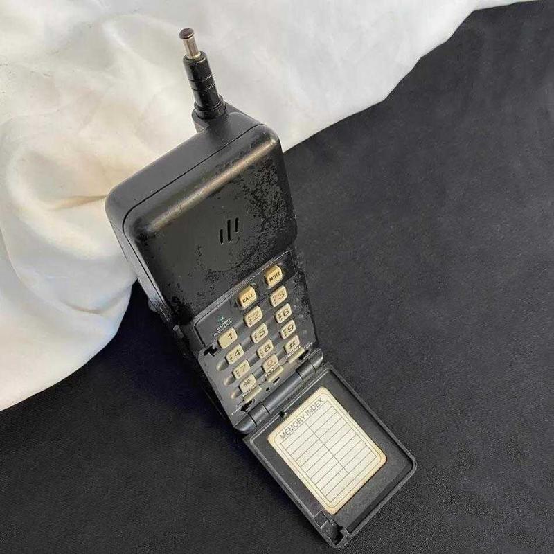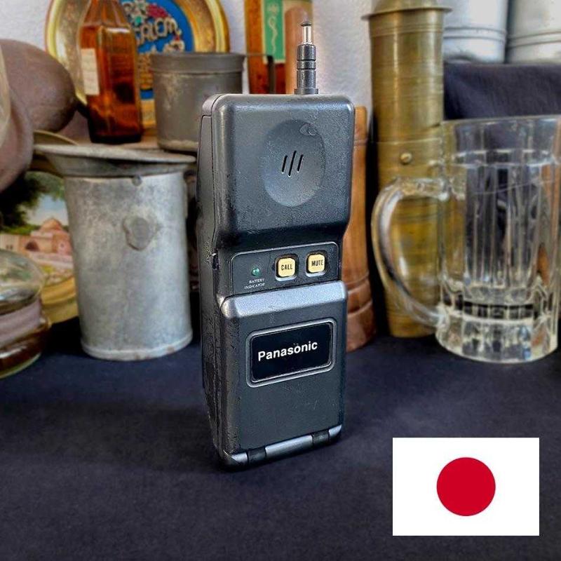 1988 üretimi 3 CTB modeli National Panasonic, Japonya'da 80'lerin sonunda piyasaya sürülen ilk nesil telsiz telefonlarından biridir. Günümüzde çok az örneği kalan bu nadir model, mobil iletişimin doğuşuna tanıklık etmiş ikonik vintage cihazlardan biridir. Orijinal 3.6V / 280 mAh bataryası hala üzerindedir. Sabit, kalın anteniyle dönemin analog mobil ağlarına (AMPS/NMT) bağlanmak üzere tasarlanmıştır. Yandaki bir düğmeyele kapak açılıyor ve tuşlara ulaşıyor. Üzerindeki “Memory Index”, “Mute” ve “Call” gibi fiziksel tuşlarıyla, zamanının ileri teknoloji örneklerinden biridir. Nadir bir dekoratif obje olan telefon, çalışır durumda değil ancak tuşları, ön ve arka kapağıyla yaşına göre oldukça iyi durumdadır. Herhangi bir eksik, kırık parçası bulunmuyor. National Panasonic Cordless Telephone Model: 3 CTB Uzunluk: 18 cm Ağırlık: 200