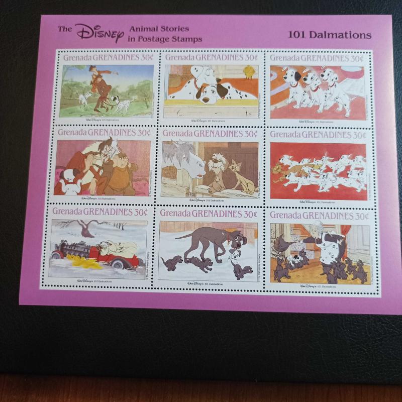 1988 yılında Grenada Grenadines tarafından çıkarılan "101 Dalmaçyalı" temalı koleksiyonluk bir hatıra bloğu MNH