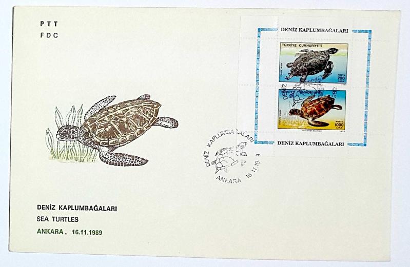 1989 FDC Deniz Kaplumbağaları, Ankara, 16.11.1989, PTT M.O.B.Y.D. İlk Gün Zarfı (FDC-419), bir ay önce satışa sunulmuştur.