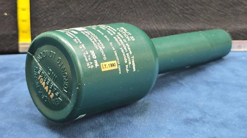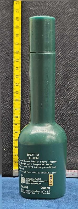 1990 Tarihli BRUT 33 Plastik Losyon Şişesi, Boş başlıklı antika/koleksiyon objesi Türkiye menşe’lidir. 1950-1999 arası dönemine aittir.