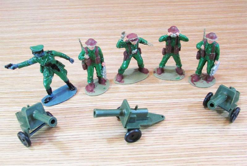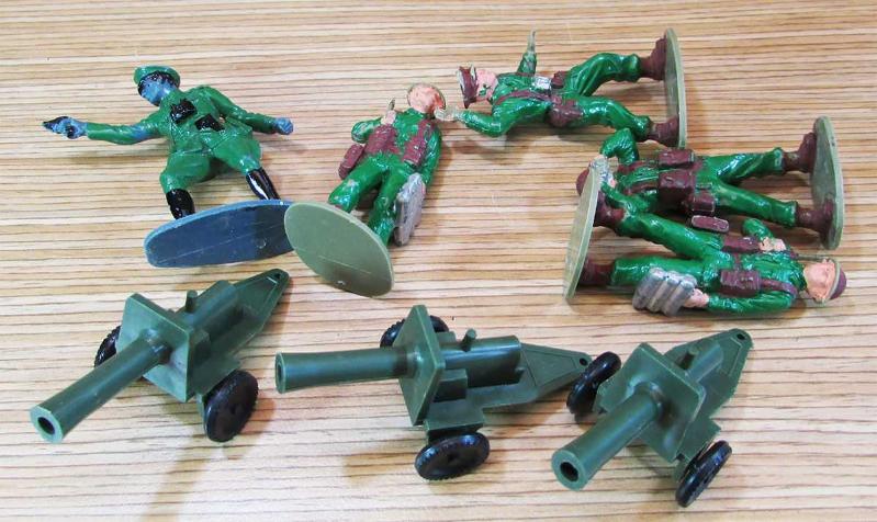 1990 LARDAN KALMA AVRUPA KALİTELİ SERT PLASTİK YAPILI 5 ADET ASKER3 ADET TOP FİGÜRÜ TOPLAM 8 PARÇA YAKIN RESİMLERİNDE GÖRÜLDÜĞÜ ÜZERE MEVCUDU İLE SAĞLAM VE ÇOK İYİ KONDÜSYONDALAR BOYLARI 5,5cm