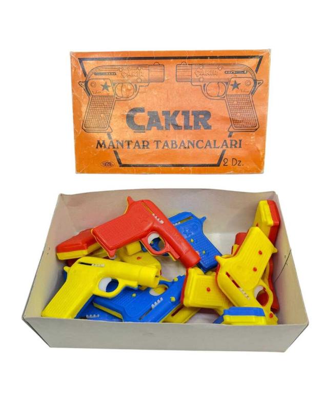 1990's Çakır Plâstik Mantar Tabancaları (Dolu Kutu) AOB5345 başlıklı antika/koleksiyon objesinin menşei belirtilmemiştir. Objenin ait olduğu dönem bilinmeketedir.