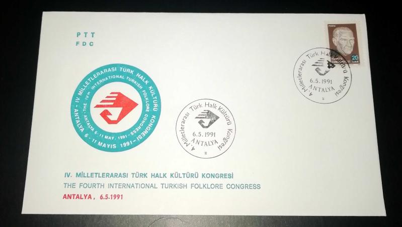 1991 IV. Milletlerarası Türk Halk Kültürü Kongresi Antalya İlk gün damgalı zarf Türkiye, en son 4 gün önce güncellenmiştir.