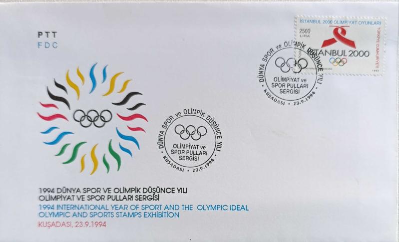 1994 DÜNYA SPOR VE OLİMPİK DÜŞÜNCE YILI OLİMPİYAT VE SPOR PULLARI SERGİSİ başlıklı ürün, Efemera, Müzik, Sinema > Pullar, Zarflar, Kartlar > İlk Gün Zarfı (FDC) > Yerli FDC kategorisi altında İkinci El olarak satılmaktadır.