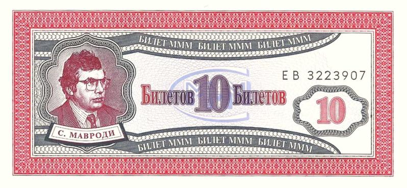 Yabancı Kağıt Para 1994 Yılı RUSYA Banker Mavrodi Parası, 1 Bilet MMM Çil Kondüsyon 1990'larda Rusya'da faaliyet gösteren ve büyük bir Ponzi şeması olarak bilinen MMM şirketine ait 10 MMM biletidir. Tarihi Değer: Bu biletler, dünyanın en büyük finansal dolandırıcılıklarından birine tanıklık eden tarihi birer koleksiyon parçasıdır. Tasarım: Bilet üzerinde, MMM şirketinin kurucusu Sergei Mavrodi'nin resmi yer almaktadır. Kullanım: Biletler gerçek bir para birimi değil, şirket içi bir tür hisse senedi veya propaganda notu olarak işlev görüyordu. Koleksiyon: Günümüzde kağıt para koleksiyoncuları tarafından ilgi gören nostaljik ve tarihi bir efemera objesidir.