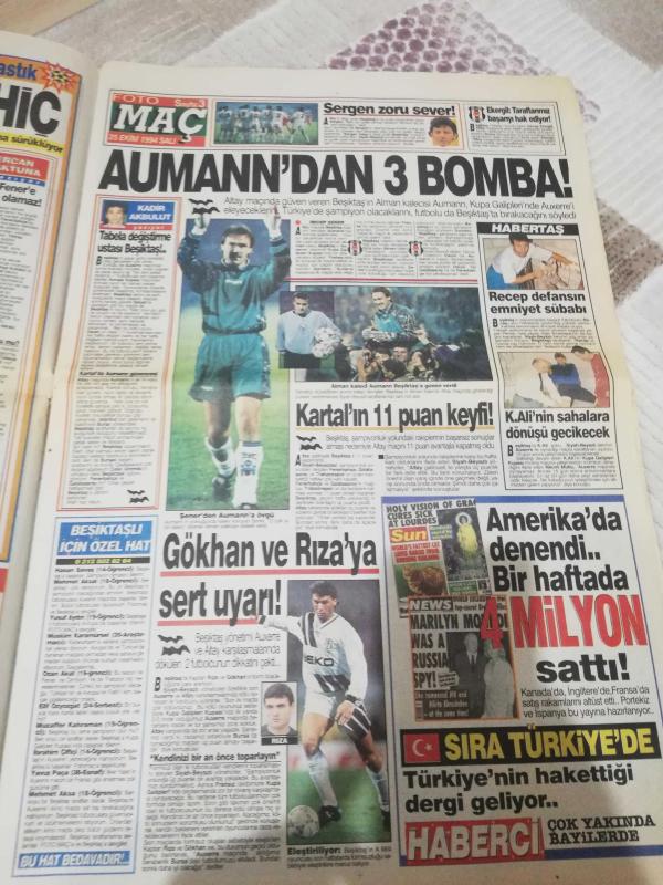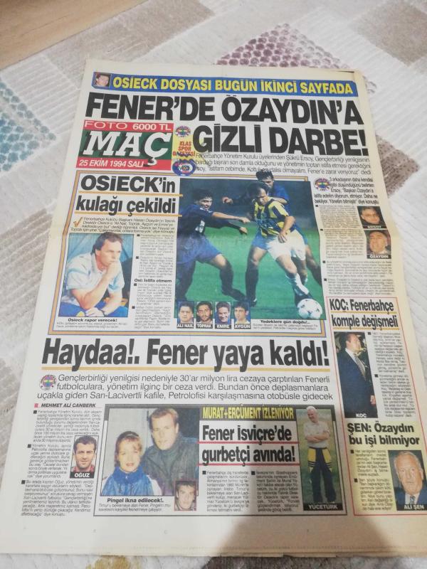25 ekim 1994 Salı günü fotomaç gazetesi. Süper lig haftanın panaromasına haftanın karması galatasaray beşiktaş fenerbahçe trabzon sayfaları.. Fenerbahçe osieck dosyası sayfaları tam eksiksiz. Sade ilk sayfa kat yerinde 1 cm lik yırtık vardır.harici durumu iyidir gazetenim