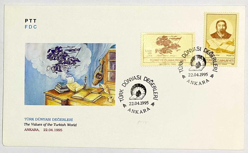 1995 FDC Türk Dünyası Değerleri, Ankara, 22.04.1995, PTT M.O.B.Y.D. İlk Gün Zarfı (FDC-495), en son 5 gün önce güncellenmiştir.