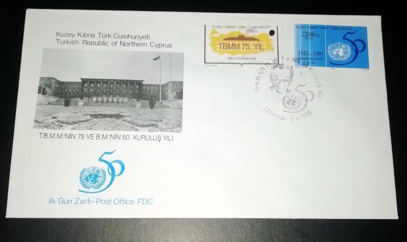 1995 TBMM'nin 75 ve BM'nin 50. Kuruluş Yılı İlk gün damgalı zarf KKTC, en son 14 gün önce güncellenmiştir.