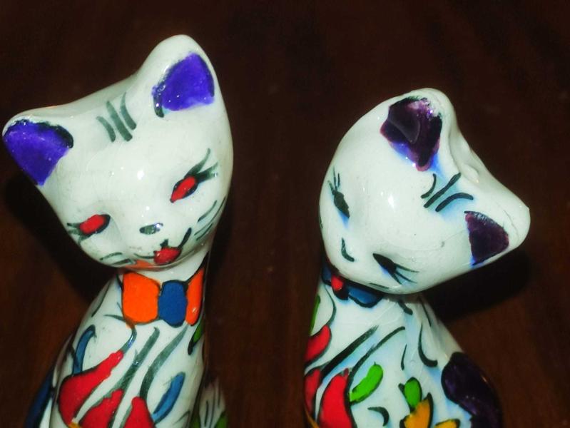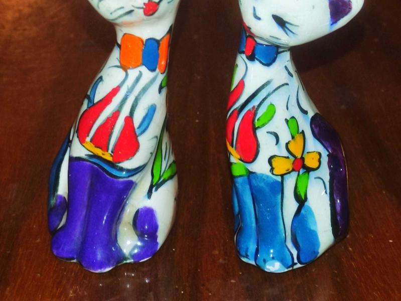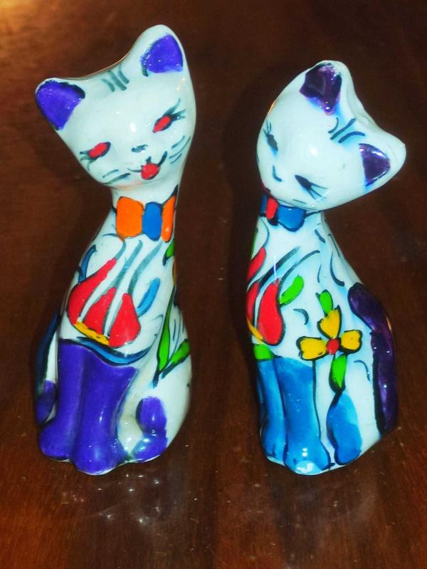 19959-ÇOK ŞAHANE EL BOYAMA PORSELEN 2 ADET ÇİNİ KEDİ BİBLO