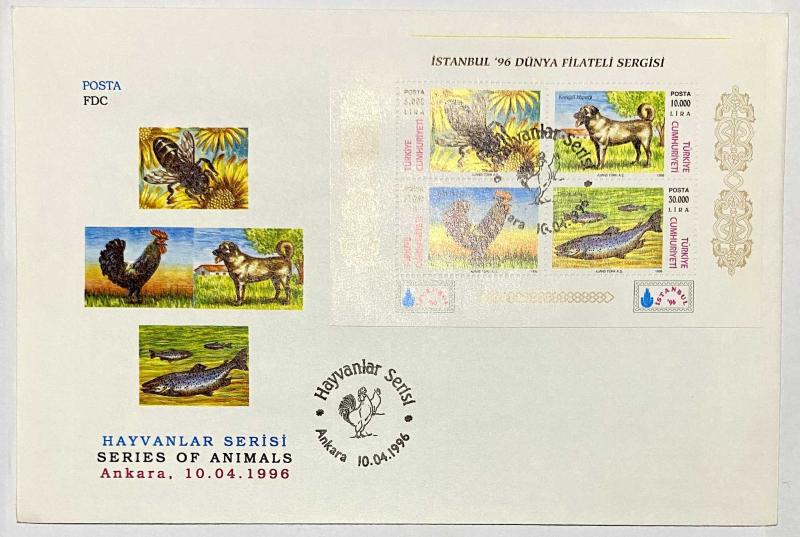 1996 FDC İstanbul'96 Dünya Filateli Sergisi Hatıra Bloğu I - Hayvanlar, Ankara, 10.04.1996, PTT M.O.B.Y.D. İlk Gün Zarfı (FDC-506) Fotoğraflar gönderilecek ürüne aittir. Fatura gönderilmeyecektir. Kargo bilgisi ve diğer ürünlerim için mağazama göz atabilirsiniz.