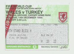 1996 FIFA DÜNYA KUPASI / GALLER - TÜRKİYE MAÇ BİLETİ...
