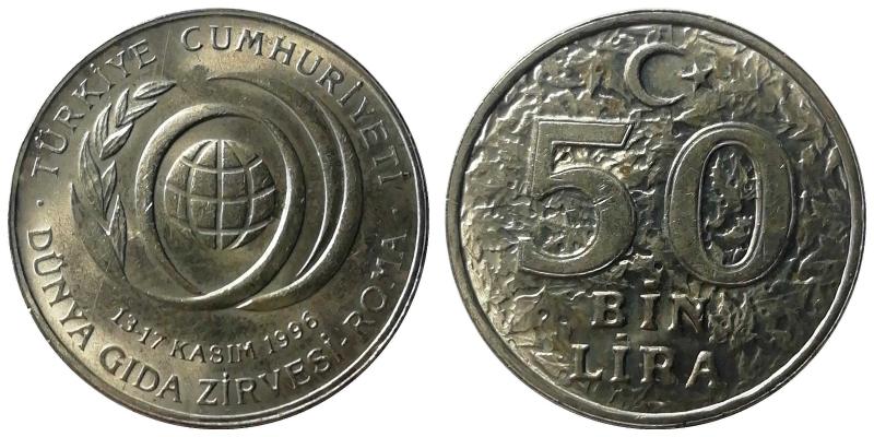 1996 Yılı 50.000 Lira Dünya Gıda Zirvesi - Roma başlıklı ürün, Efemera, Müzik, Sinema > Nümismatik, Para, Madalya > Madeni Paralar > Cumhuriyet Dönemi kategorisi altında İkinci El olarak satılmaktadır.
