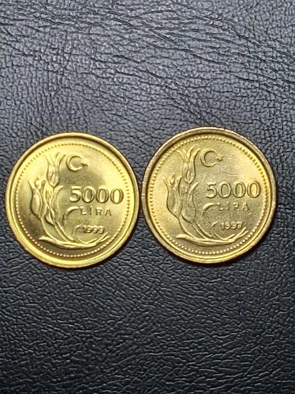 1997-1999 YILLARINA AİT MADENİ 5000 TÜRK LİRASI ÇİL ( KALIN - İNCE) TCM 5651, en son bir ay önce güncellenmiştir.