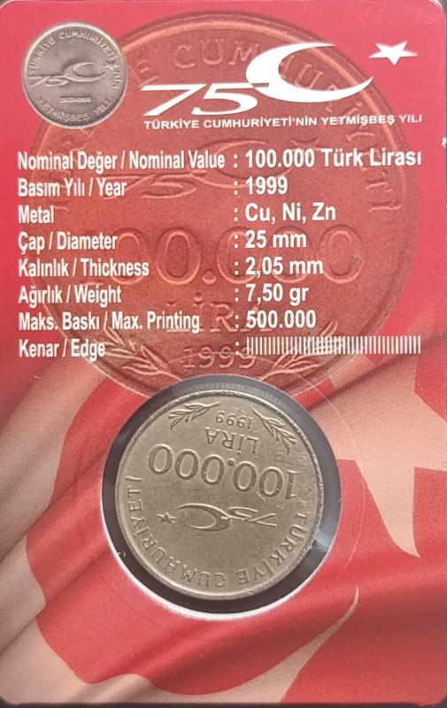 @@ 1999 Yılı @@ @@ 100 Bin Lira @@ @@ 75. Yıl @@ @@ Folderda @@ @@ Hatıra Para @@ @@ Gorseldeki Ürün Gönderilecektir @@ @@ Fatura Kesilmeyecektir @@