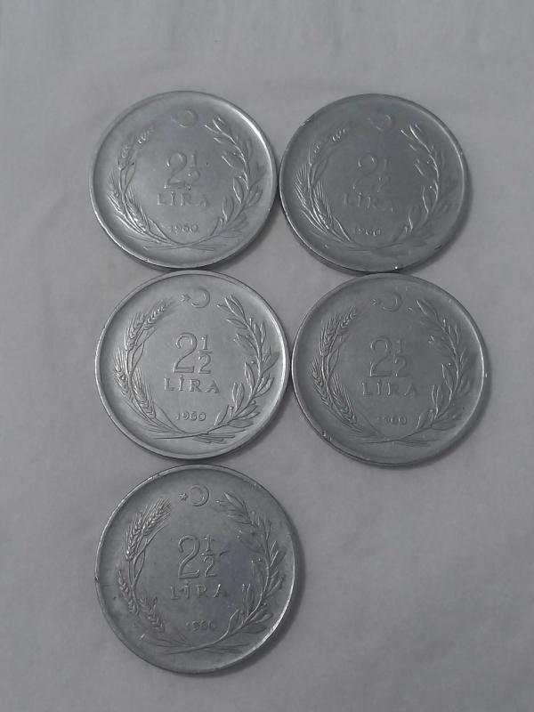 2.5 LİRA 1960 MADENİ PARA ADET FİYATIDIR, 1 yıl önce satışa sunulmuştur.