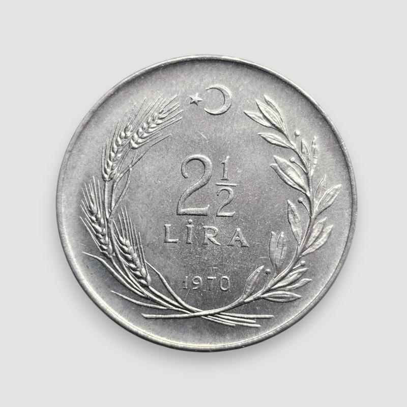 2.5 Lira 1970, KM#896, ÇİL,MS-66 - Saban Kılıçtan Üstündür, bir ay önce satışa sunulmuştur.