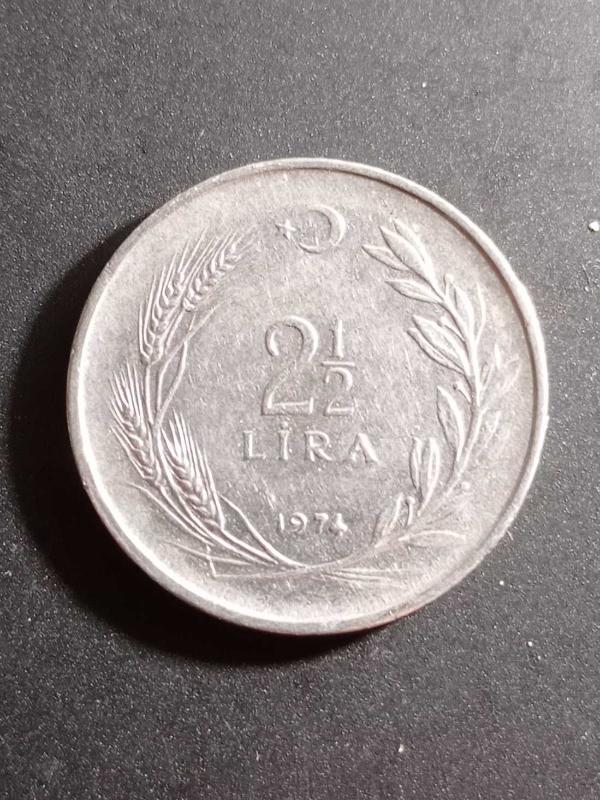 2.5 Lira 1974 Madeni Para. Eski Koleksiyon Madenî Para. Eski Para. Hatıra Para.