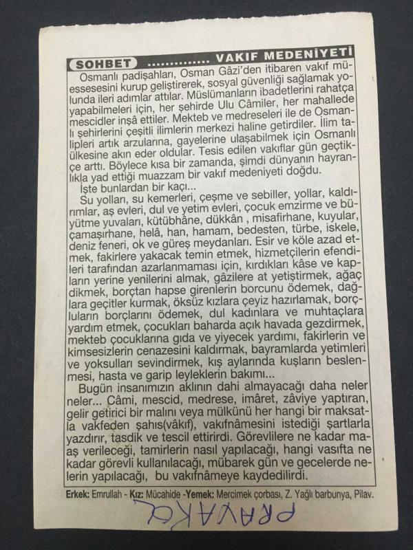 Kitapsız hayat kör,sağır,dilsiz yaşatmaktır.Kitap,zekayı kibarlaştırır.Kitaplar beni ortaya çıkardı.Milletlerin aklı,kitapla gelişir ve büyür.Kimler fazla okuyorsa,az okuyanlara hükmeder.Okumadan geçen bir gün,kaybedilmiş bir gündür.Söz uçar,yazı kalır.Yazı ile saptanmayan her şey,kaybolmuş demektir.Alem unutmuş,kalem (kitap) unutmamış.Bir kitabın içinde birçok ülkeler gezebilirsiniz.En iyi kitapları önceden okuyunuz,çünkü hepsini okuma fırsatını bulamayabilirsiniz.Bizde kitap baş üstünde taşınacak kadar makbuldur.Yazılı kağıdın üzerine basılmaz bile.”Hacı hacıyı Mekke’de,derviş dervişi tekkede bulur,demişler.Alim de alimi bizim çarşıda bulur.”Pirimiz Arslan Kaynardağ’dır,Nizamettin Aktuç’tur,Raif Yelkenci’dir.Gutemberg (1400-1468) matbaayı buldu.