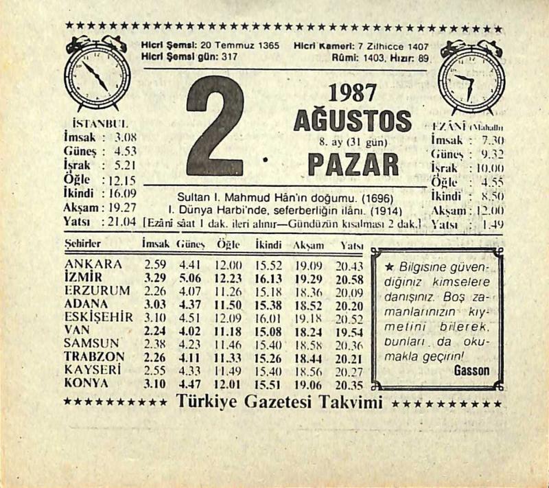 2 Ağustos 1987 Takvim Yaprağı - Doğum Günü Hediyesi EFMN13845, en son 22 gün önce güncellenmiştir.