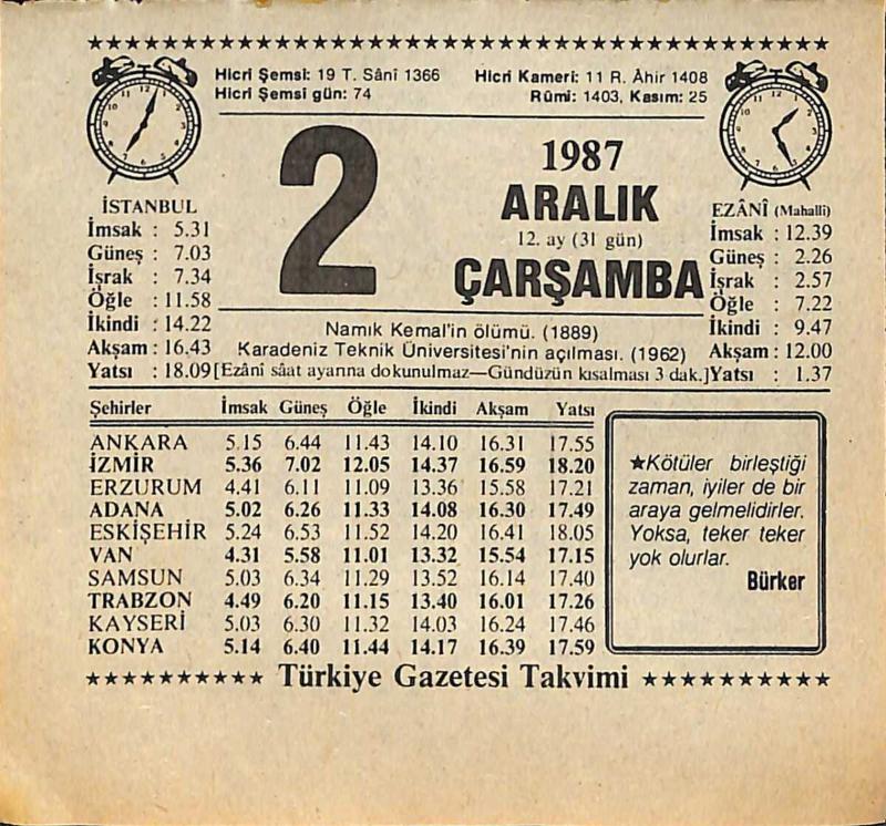 2 Aralık 1987 Takvim Yaprağı - Doğum Günü Hediyesi EFMN15009, en son 20 gün önce güncellenmiştir.