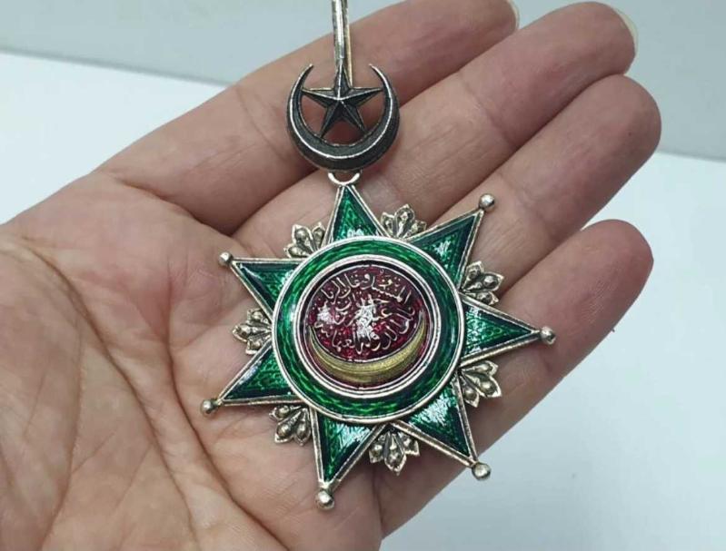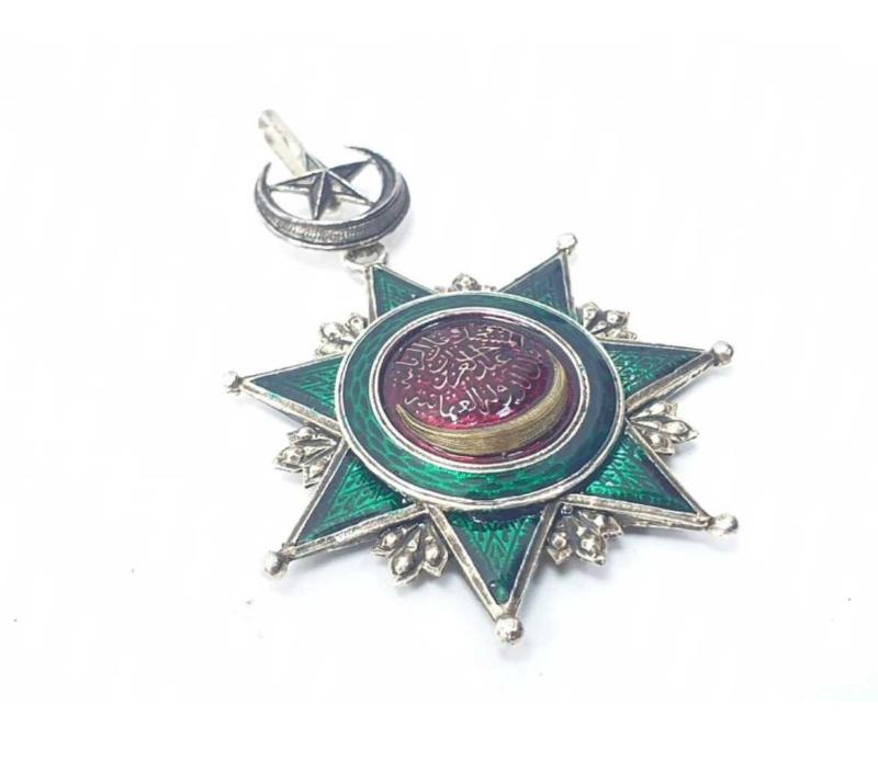 19. yy. Osmanlı Dönemi. Gümüş üzerine yeşil ve kırmızı renkli mine işçilikli. Hicri 1268 (Miladi 1852) tarihli. Osmaniye Nişanı (Nişan-ı Osmani) Reprodüksiyon : “El Müstenit Bittevfikat El Rabbaniye Abdülaziz Han Melikil Devletül Osmaniye” yazılıdır.
