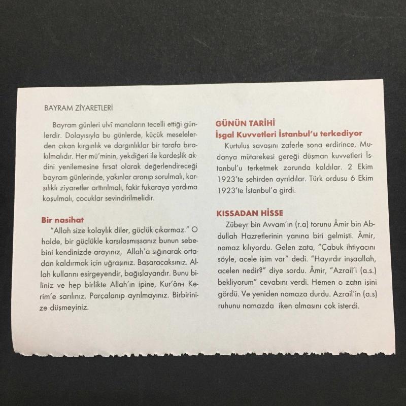 2 EKİM 2008 -TAKVİM YAPRAĞI-DOĞUM GÜNÜ HEDİYESİ-KUVEYT TÜRK TAKVİMİ,İNGİLİZ BİRLİKLERİ İSTANBULDAN AYRILDI,1923,RAMAZAN BAYRAMI 3.GÜN,BAYRAM ZİYARETLERİ,BİR NASİHAT,GÜNÜN TARİHİ İŞGAL KUVVETLERİ İSTANBULU TERK EDİYOR,KISSADAN HİSSE, en son 8 ay önce güncellenmiştir.