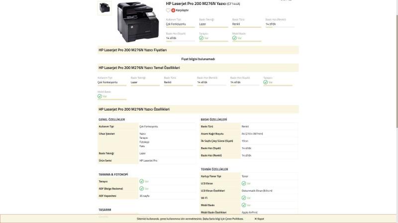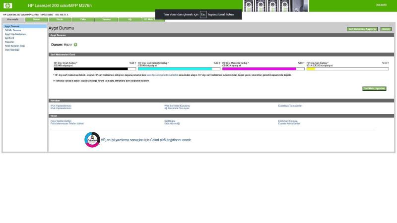 2.EL ARIZALI HP LaserJet 200 color MFP M276n renkli YAZICI TARAYICI FOTOKOPİ FAX USB LAN, 5 gün önce kitantik’te satışa sunulmuştur.