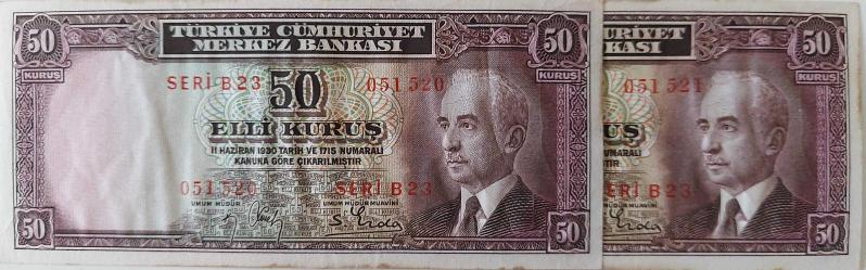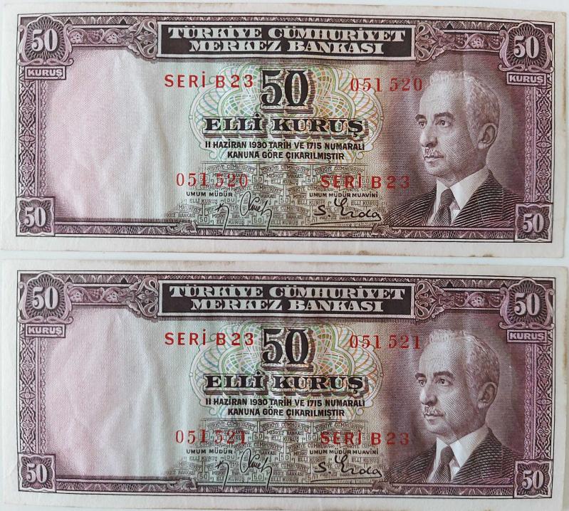2.EMİSYON İNÖNÜ BATAN GEMİ RAKAM SIRALI 50 ELLİ KURUŞ ORİJİNAL KAĞIT PARALAR SERİ B23 051520-SERİ B23 051521 ÇİLALTI ÇOK NADİR, 10 ay önce satışa sunulmuştur.