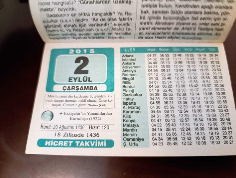 2 EYLÜL 2015 TAKVİM YAPRAĞI, 6 ay önce satışa sunulmuştur.