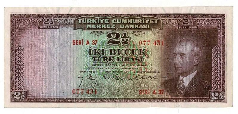 2.Emisyon 1.Tertip 2½ Türk Lirası Naturel Çok Çok Temiz+ Seri A37 077431