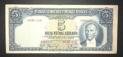 2.Emisyon 5 LİRA (1.Tertip) F13 Seri Katalogda Yoktur! NATÜREL ÖLÇÜLERİNDE (TCK29) NADİR Seri