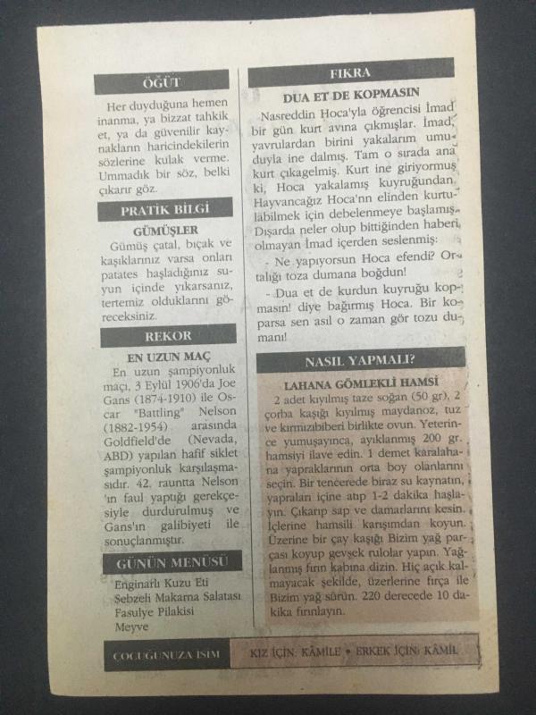 2 HAZİRAN 2001-TAKVİM YAPRAĞI-DOĞUM GÜNÜ HEDİYESİ-ÜLKER TAKVİMİ,KOZANIN KURTULUŞU 1920,300 BİN TÜRKÜN BULGARİSTANDAN YÜRKİYE GÖÇ ETMESİ 1989,ŞAİR AHMET ERİFİN VEFATI 1991,ADAMIN İYİSİ İŞ BAŞINDA BELLİ OLUR,DUA ET DE KOPMASIN başlıklı ürün, Efemera, Müzik, Sinema > Belge ve Evraklar > Takvimler kategorisi altında İkinci El olarak satılmaktadır.