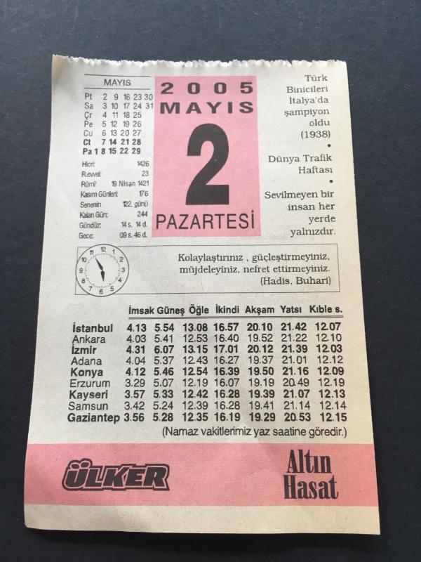 2 MAYIS 2005-TAKVİM YAPRAĞI-DOĞUM GÜNÜ HEDİYESİ-ÜLKER TAKVİMİ,TÜRK BİNİCİLERİ İTALYADA ŞAMPİYON OLDU,1938,DÜNYA TRAFİK HAFTASI,, en son 8 ay önce güncellenmiştir.