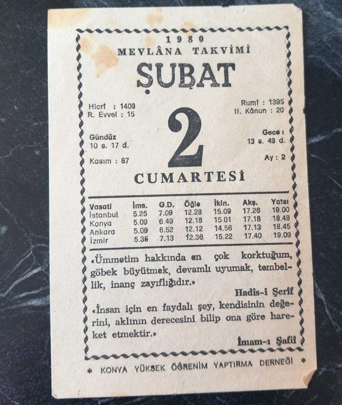 2 ŞUBAT 1980 TARİHLİ TAKVİM. DOĞUM GÜNÜ HEDİYESİ İÇİN BİRE BİR. KOLEKSİYONLUK NADİR, 8 gün önce satışa sunulmuştur.