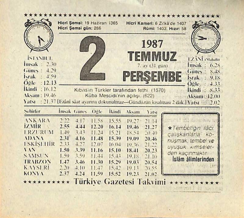 2 Temmuz 1987 Takvim Yaprağı - Doğum Günü Hediyesi EFMN13814, en son 22 gün önce güncellenmiştir.