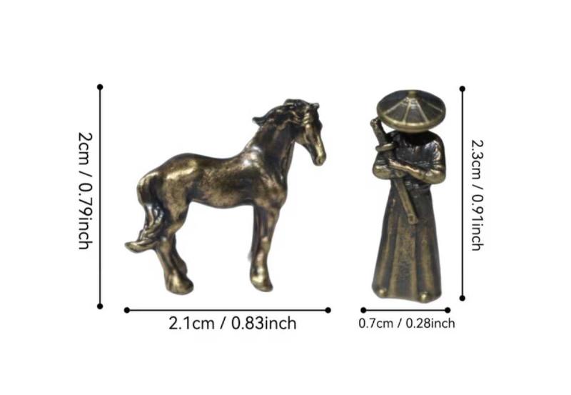 Detaylı işçiliğe sahip pirinç at ve geleneksel kıyafetli figürden oluşan 2’li mini set. Mikro peyzaj, teraryum, masaüstü ve raf dekorasyonu için şık ve koleksiyonluk bir parçadır. ✨ Set İçeriği: • 1 adet pirinç at figürü • 1 adet pirinç figür (şapkalı / bastonlu tasarım) 📏 Ölçüler (yaklaşık): 🐎 At Figürü • Yükseklik: 2 cm • Uzunluk: 2,1 cm 🧍 Figür • Yükseklik: 2,3 cm • Genişlik: 0,7 cm ✨ Özellikler: • Pirinç alaşım • Mini boy koleksiyonluk tasarım • Dayanıklı ve detaylı işçilik • 2’li set olarak satılmaktadır