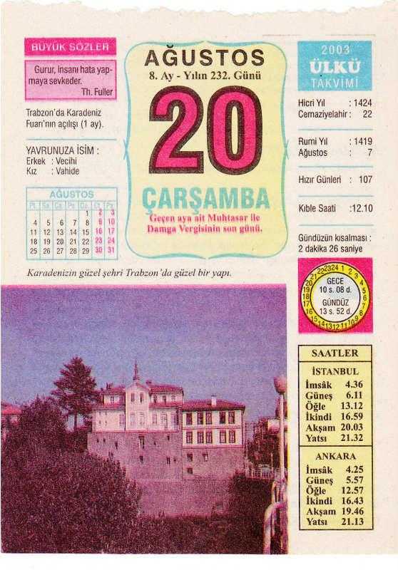 20 AĞUSTOS 2003 TAKVİM YAPRAĞI, en son 1 yıl önce güncellenmiştir.