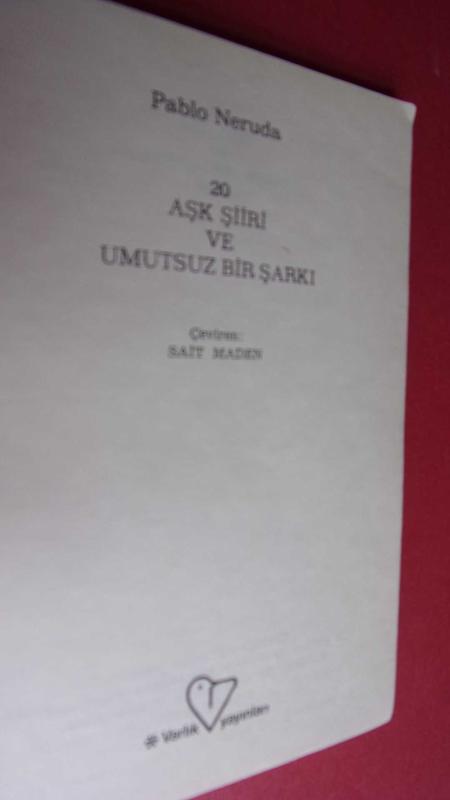 20 AŞK ŞİİRİ VE UMUTSUZ BİR ŞARKI, PABLO NERUDA tarafından kaleme alınmıştır. Kitap 1983 yılında Varlık yayınları tarafından [İSTANBUL] yayınlanmıştır. Bu baskının çevirisi SAİT MADEN tarafından yapılmıştır. 118 sayfadır. 20 AŞK ŞİİRİ VE UMUTSUZ BİR ŞARKI adlı eser Türkçe dilindedir.
