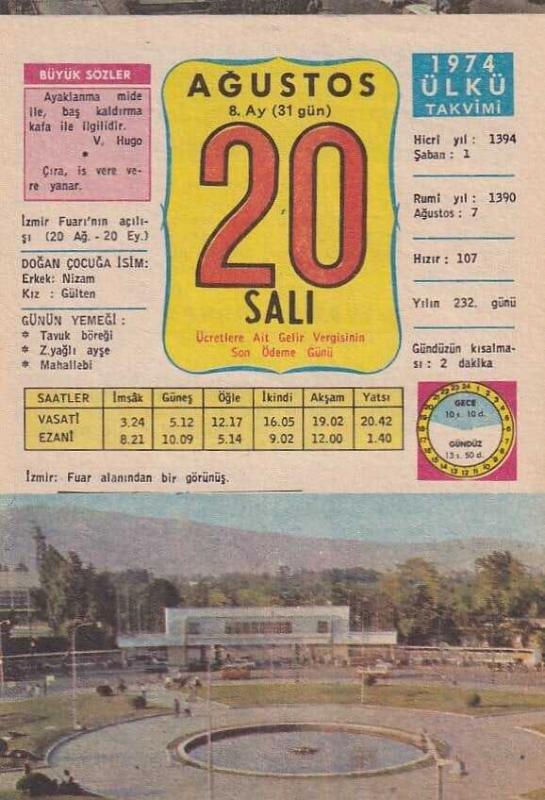 20 Ağustos 1974 Takvim Yaprağı -Doğum Günü Hediyesi EFM(N)6330, en son 20 gün önce güncellenmiştir.