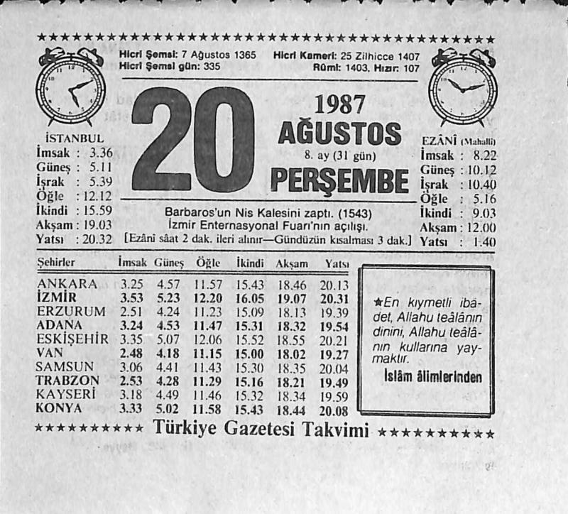 20 Ağustos 1987 Takvim Yaprağı - Doğum Günü Hediyesi EFMN13924, en son 19 gün önce güncellenmiştir.