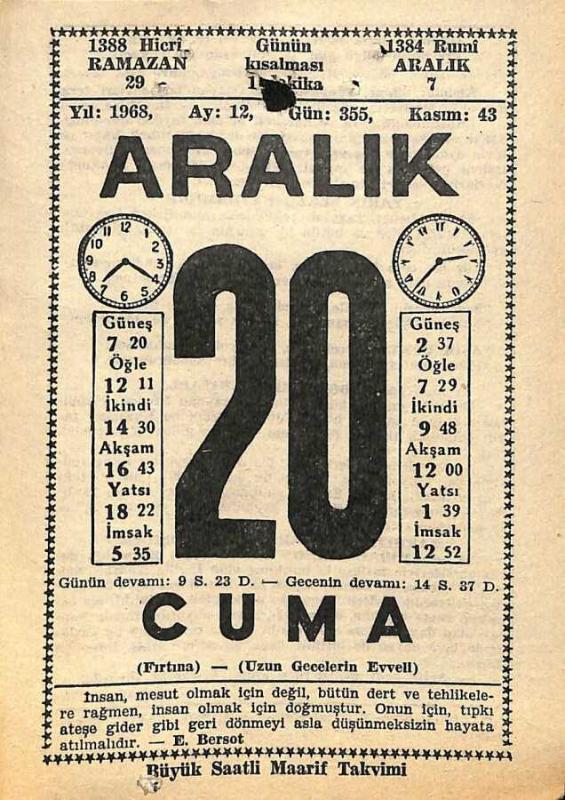 20 Aralık 1968 Takvim Yaprağı - Doğum Günü Hediyesi EFM(N)11056, en son 19 gün önce güncellenmiştir.