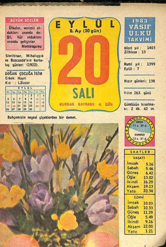 20 Eylül 1983 Takvim Yaprağı - Doğum Günü Hediyesi EFM(N)10040, en son 23 gün önce güncellenmiştir.