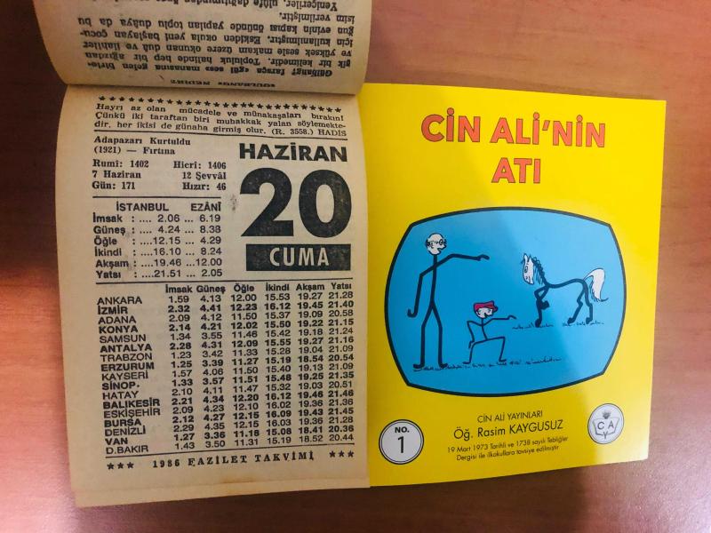 20 Haziran 1986 hediyelik orijinal Fazilet takvim yaprağı (Cin Ali kitabı hediyeli:), 5 yıl önce satışa sunulmuştur.