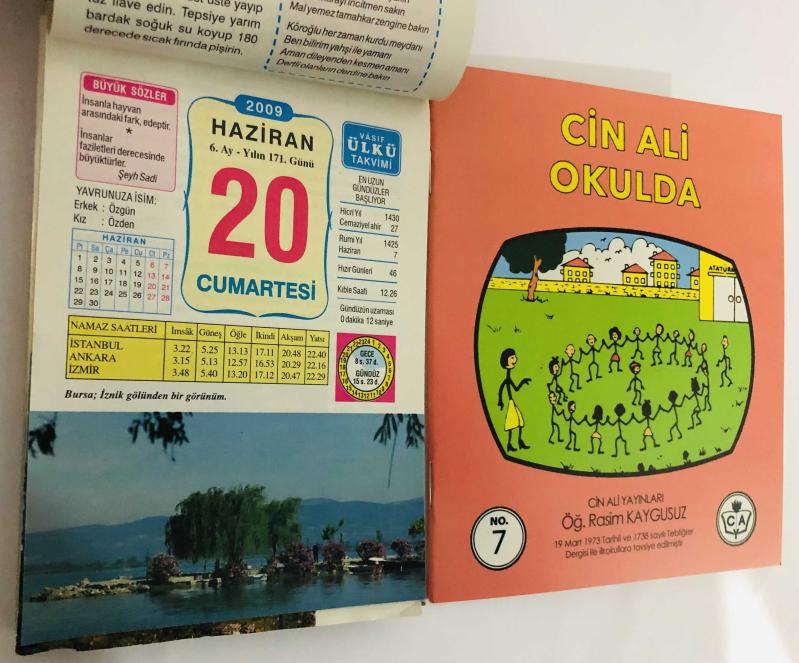 20 Haziran 2009 hediyelik orijinal Ülkü takvim yaprağı (Cin Ali kitabı hediyeli:) başlıklı ürün, Efemera, Müzik, Sinema > Belge ve Evraklar > Takvimler kategorisi altında İkinci El olarak satılmaktadır.