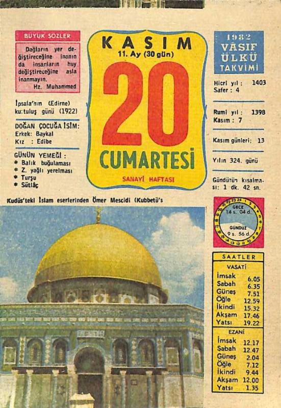 20 Kasım 1982 Takvim Yaprağı - Doğum Günü Hediyesi EFM(N)11927, en son 20 gün önce güncellenmiştir.