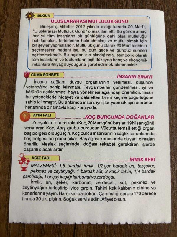 Orijinal takvim yaprağıdır.