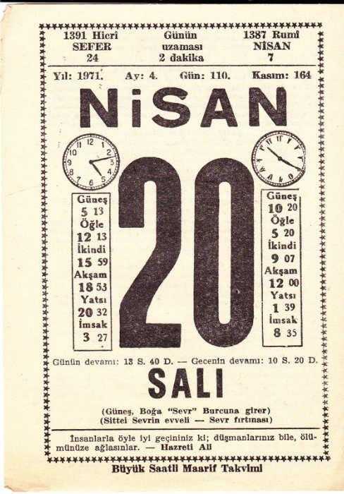 20 NİSAN 1971 SAATLİ MAARİF TAKVİMİ YAPRAĞI, en son 1 yıl önce güncellenmiştir.