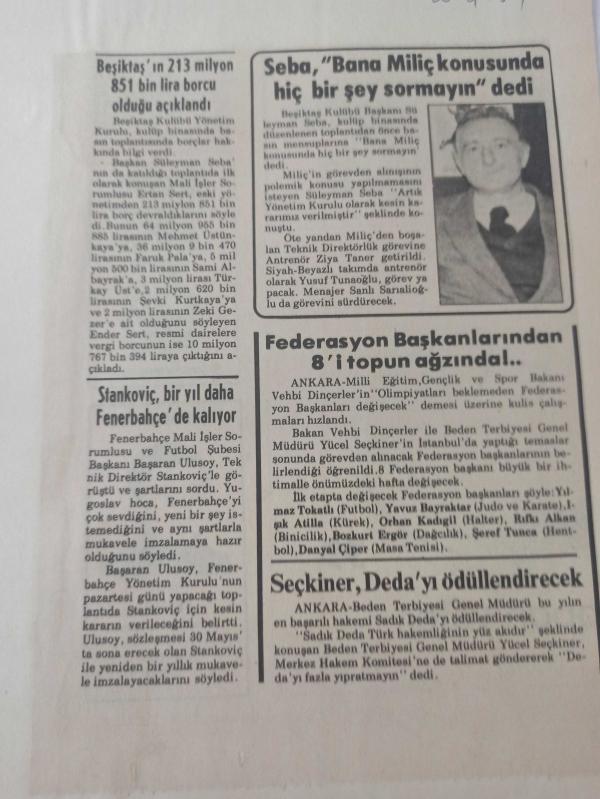 20 Nisan 1984 - Beşiktaş'ın 213 milyon 851 bin lira borcu olduğu açıklandı - Süleyman Seba, ''Bana Miliç konusunda hiç bir şey sormayın'' dedi - Gazete haberi - Tek Yaprak Arkalı Önlüdür adlı eser, Kitap > Süreli Yayınlar > Dergiler > Spor kategorisinde İkinci El olarak satıştadır.